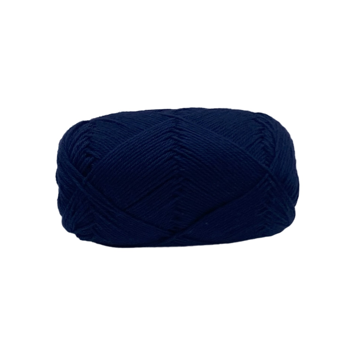 Bomuldsgarn 8/4 farve 58 Marineblå fra KJ Strik et et af de bedre prisvenlige bomuldsgarn. Garnets tråde skiller ikke ad, så det er let at hækle og strikke med. Bomuldsgarn 8/4 farve 58 Marineblå er perfekt og populært til hjemmelavede klude, hæklede dyr, strikkede håndklæder og tæpper og rigtigt mange andre spændende ting. Garnet bliver ved med at være blødt også efter vask. Bomuldsgarn er kendt for sin slidstyrke og fugtabsorberende evner.