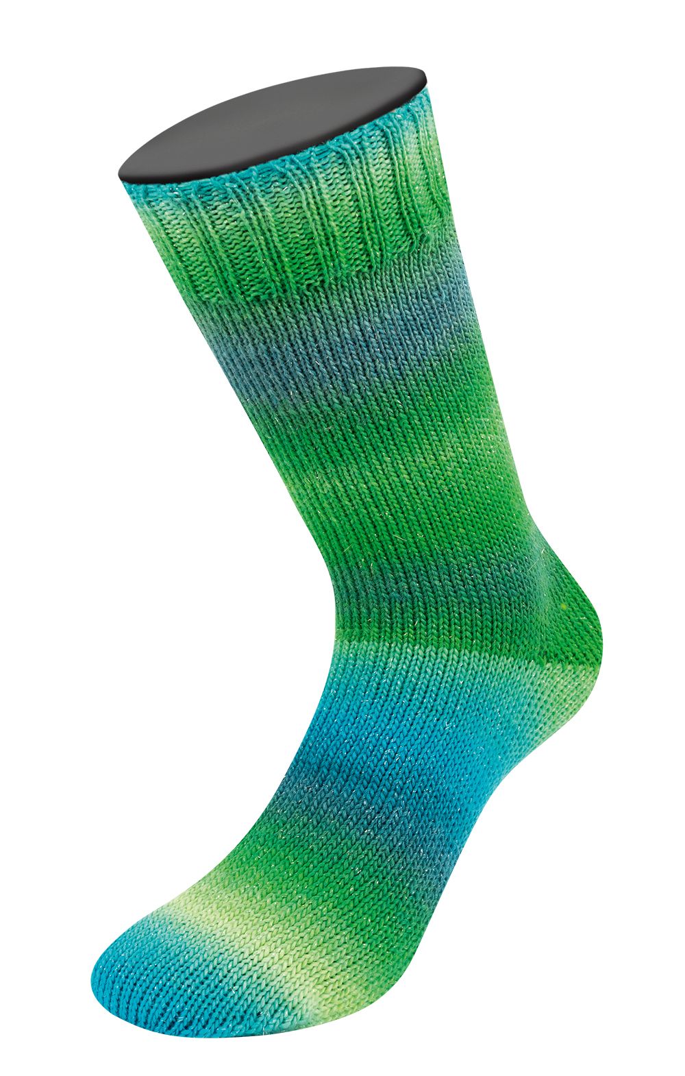 Hver nøgle indeholder ca. 400 meter garn og byder på et farverigt farveskifte, hvor nuancerne flyder naturligt ind i hinanden – perfekt til strømper, sjaler og accessories med et levende udtryk. Og fordi der er glimmer i garnet, giver det et helt perfekt finish.