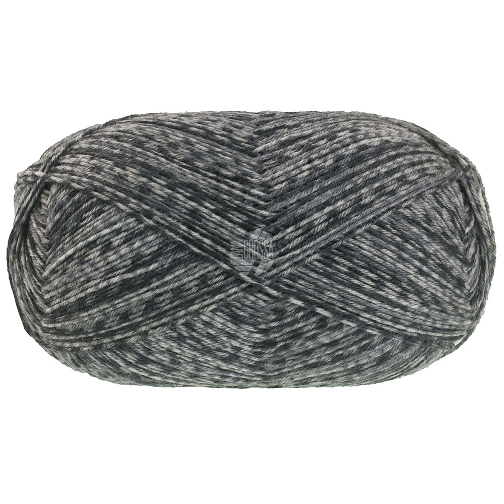 Lana Grossa Meilenweit 100 Denim Mix 4662 – Strømpegarn kombinerer styrken fra virgin wool (75 %) med holdbarheden fra polyamid (25 %) og leverer et strømpegarn, der både er maskinvaskbart og slidtstærkt – ideelt til strømper, vanter og praktisk brug