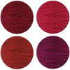 Det at garnet bruger genanvendte materialer, hvilket er godt for miljøet, giver desværre også problemer med at ramme samme farve hver gang. ECO Vita T-Shirt Yarn i bordeaux nuancer sælges derfor i nuancer og de viste farver er derfor vejledende og varierer efter tilgængelige fibre. Farverne kan derfor variere meget, men er ens i nøglerne.