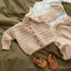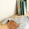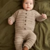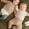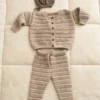 Fillip Cardigan Baby – Strikkesopskrift til en sød trøje med et fint mønster til de allermindste. Trøjen strikkes oppefra og ned med garnet Babyull Lanett fra Sandnes Garn. Opskriften indeholder også opskrift til Fillip Pants og Fillip Bonnet (kysen)