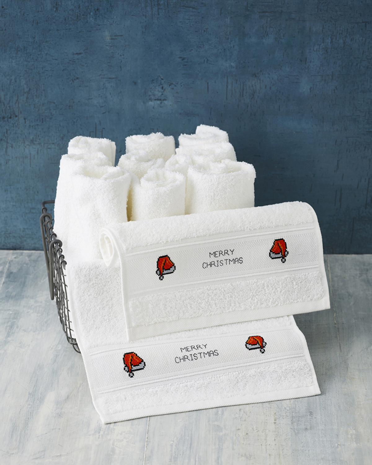 Hvert håndklæde måler 30 x 50 cm, og de passer perfekt som gæstehåndklæder – eller som en sød, håndlavet værtindegave i juletiden.