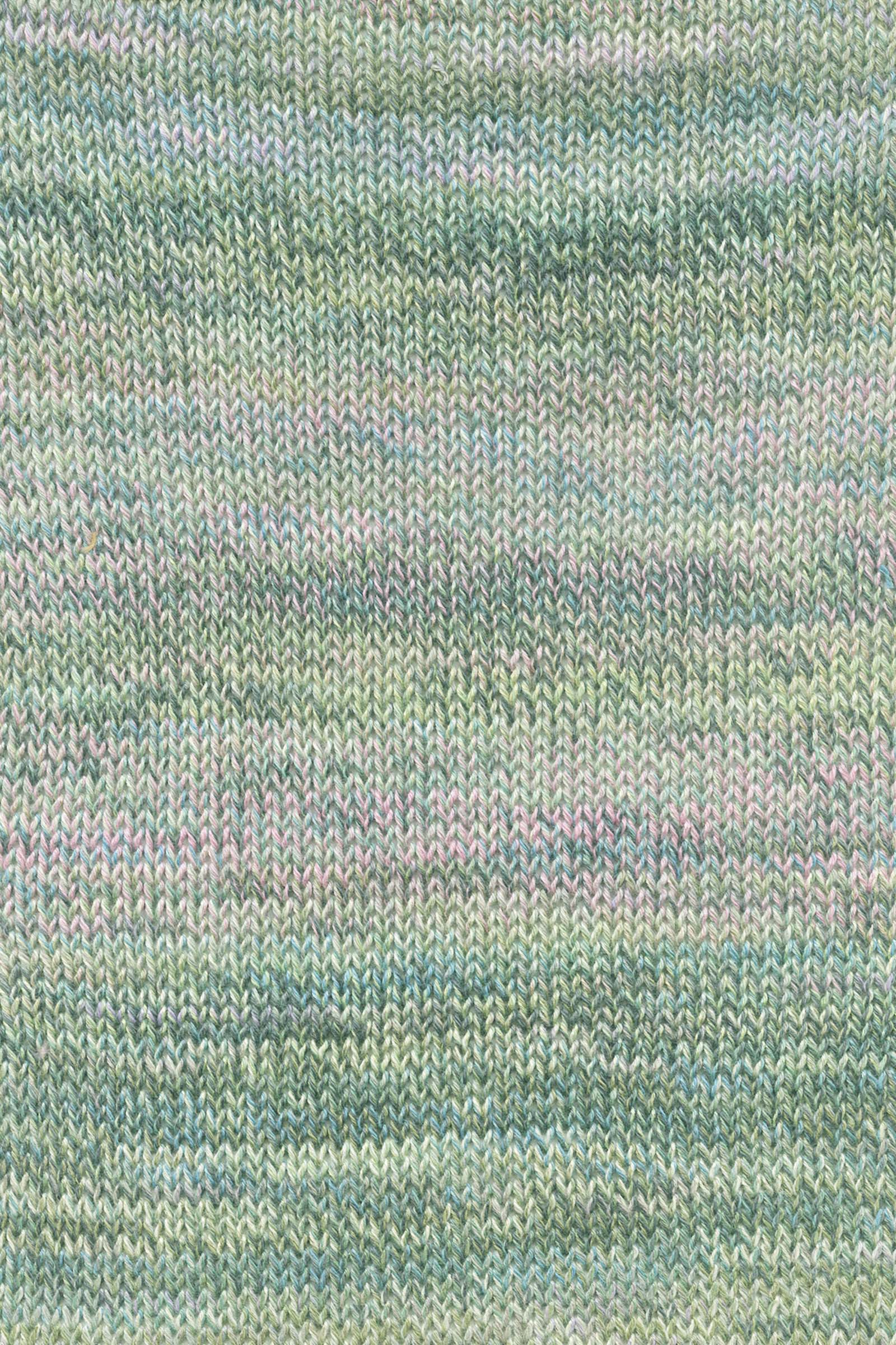 Garnet Illusion 0010 fra Lang Yarns. Det er en blanding af 55% bomuld og 45% bambusviskose, hvilket giver et blødt og behageligt garn med en let glans. Hver tråd er individuelt farvet med samme farveforløb, før de spindes sammen, hvilket resulterer i konstant skiftende farvekombinationer i hele garnet. Denne mouliné-konstruktion skaber en jævn farvefordeling med en skinnende, næsten hypnotisk effekt, der minder om en illusion eller fatamorgana.