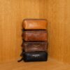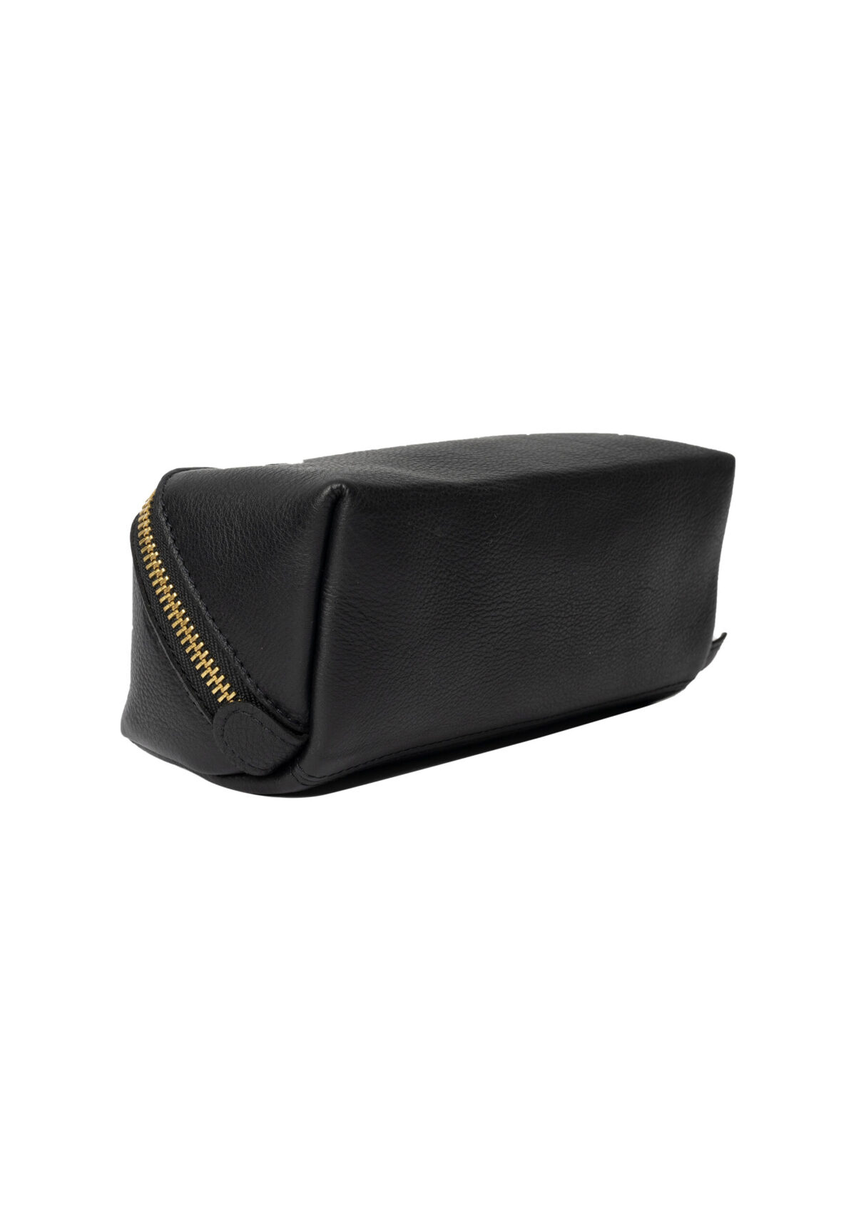 Den lille fine opbevaringstaske måler 6 cm i højden – 18 cm i bredden og 6 cm i dybden og er fremstillet af lækker blød okselæder.