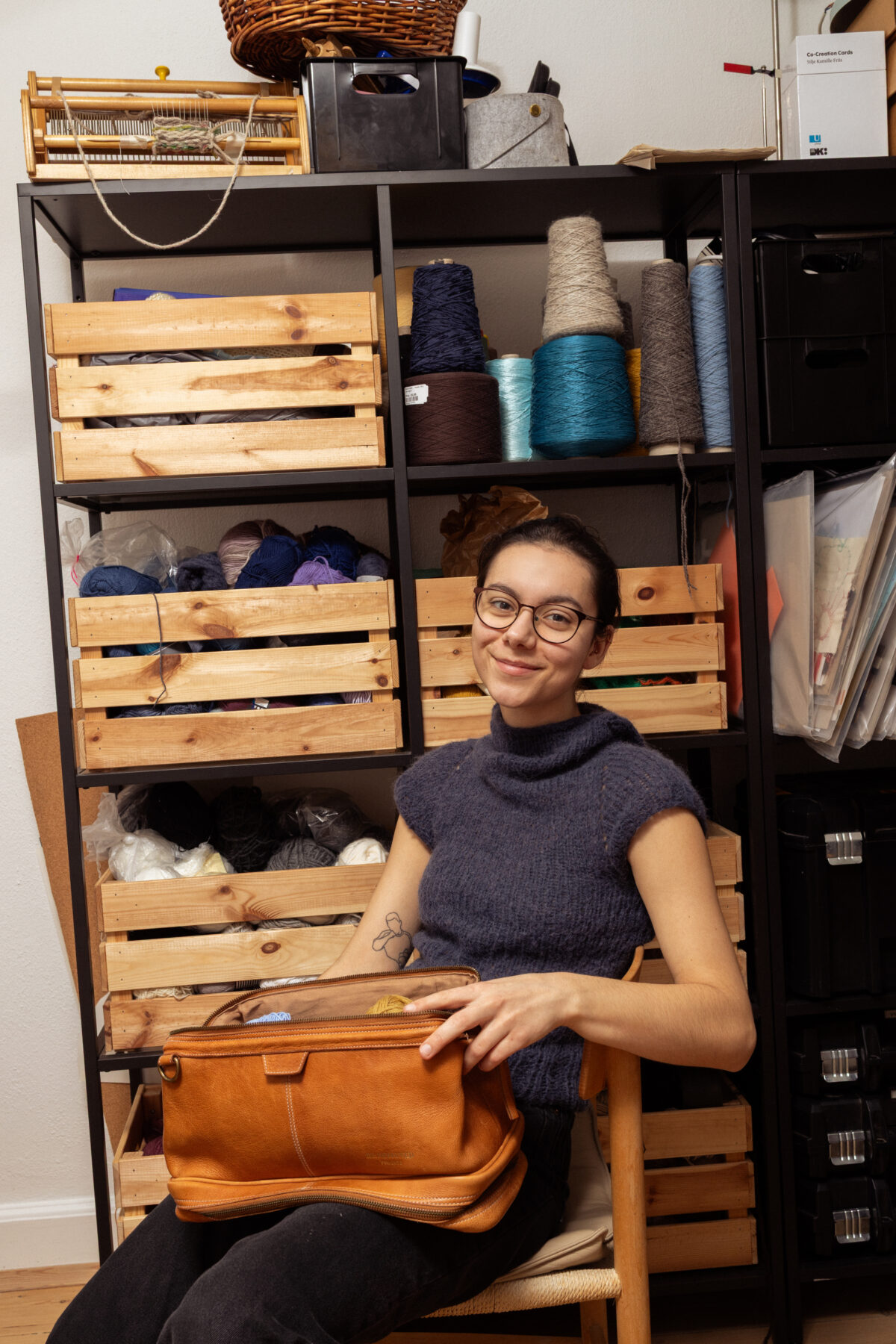 Eksklusiv lædertaske i lægestil med dedikeret rum til rundpinde, små lommer til tilbehør og et rummeligt hovedrum til garn og projekter. Den justerbare skulderrem gør tasken ideel til at tage med på farten. Fremstillet i Urban-læder med en blød og glat finish for et unikt og luksuriøst udtryk.
