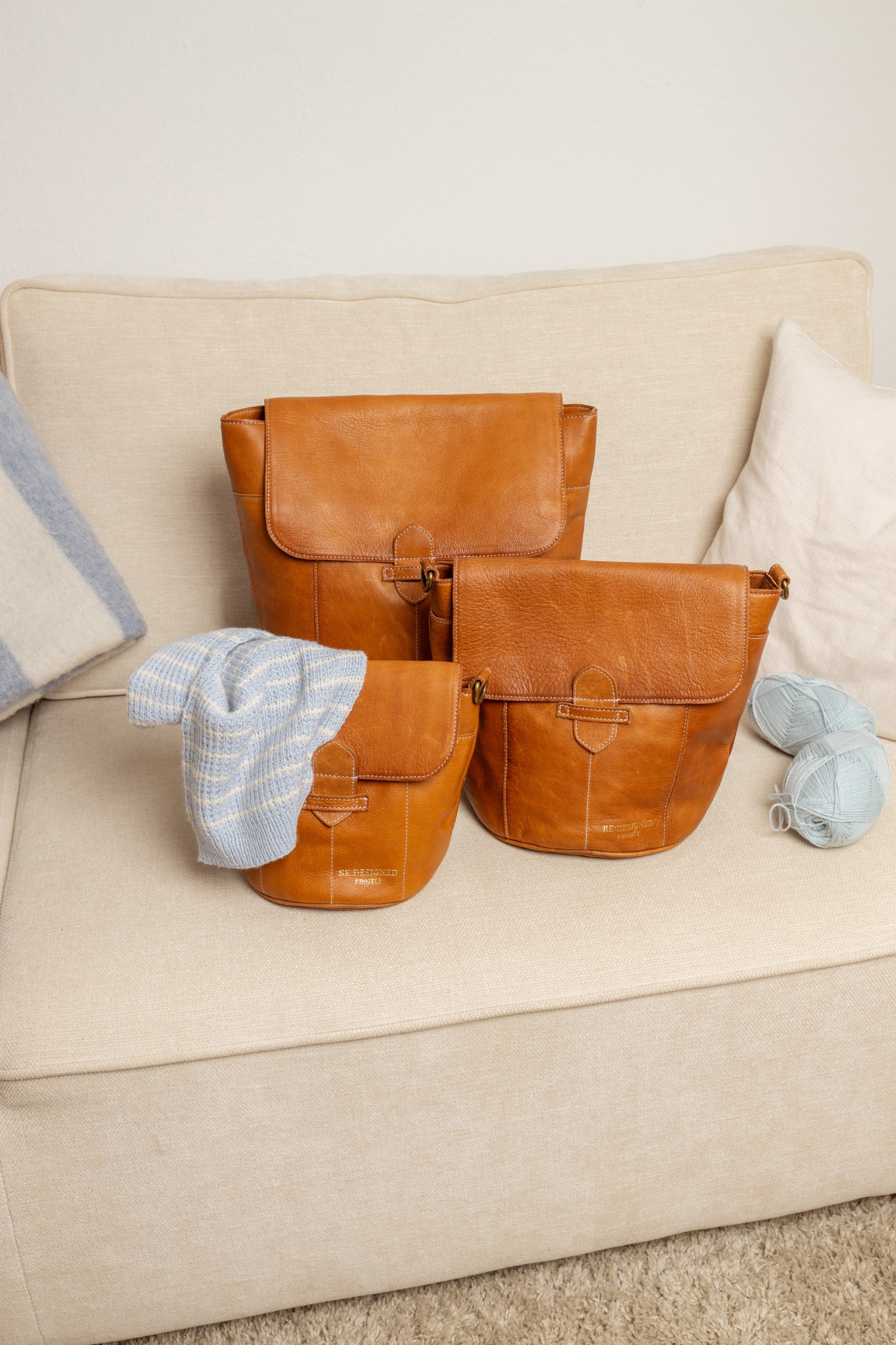 Project 59 i Burned Tan er den ideelle taske til små strikkeprojekter, du gerne vil have med på farten. Den har en rummelig og praktisk form, perfekt til et par strømper, et lille tørklæde eller andet håndarbejde, du kan tage med i tasken, i toget eller til strikkecaféen.