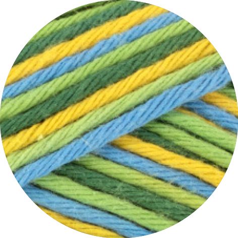 StarStar 357 Multifarvet fra Lana Grossa er 8/8 bomuldsgarn. Det multifarvede garn kan bruges alene eller sammen med ensfarvet, som en lækker lille detalje. Garnet egner sig fantastisk godt til hæklede eller strikkede grydelapper eller til make up pads. Star 357 Multifarvet kan bruges til tøj til børn og voksne.