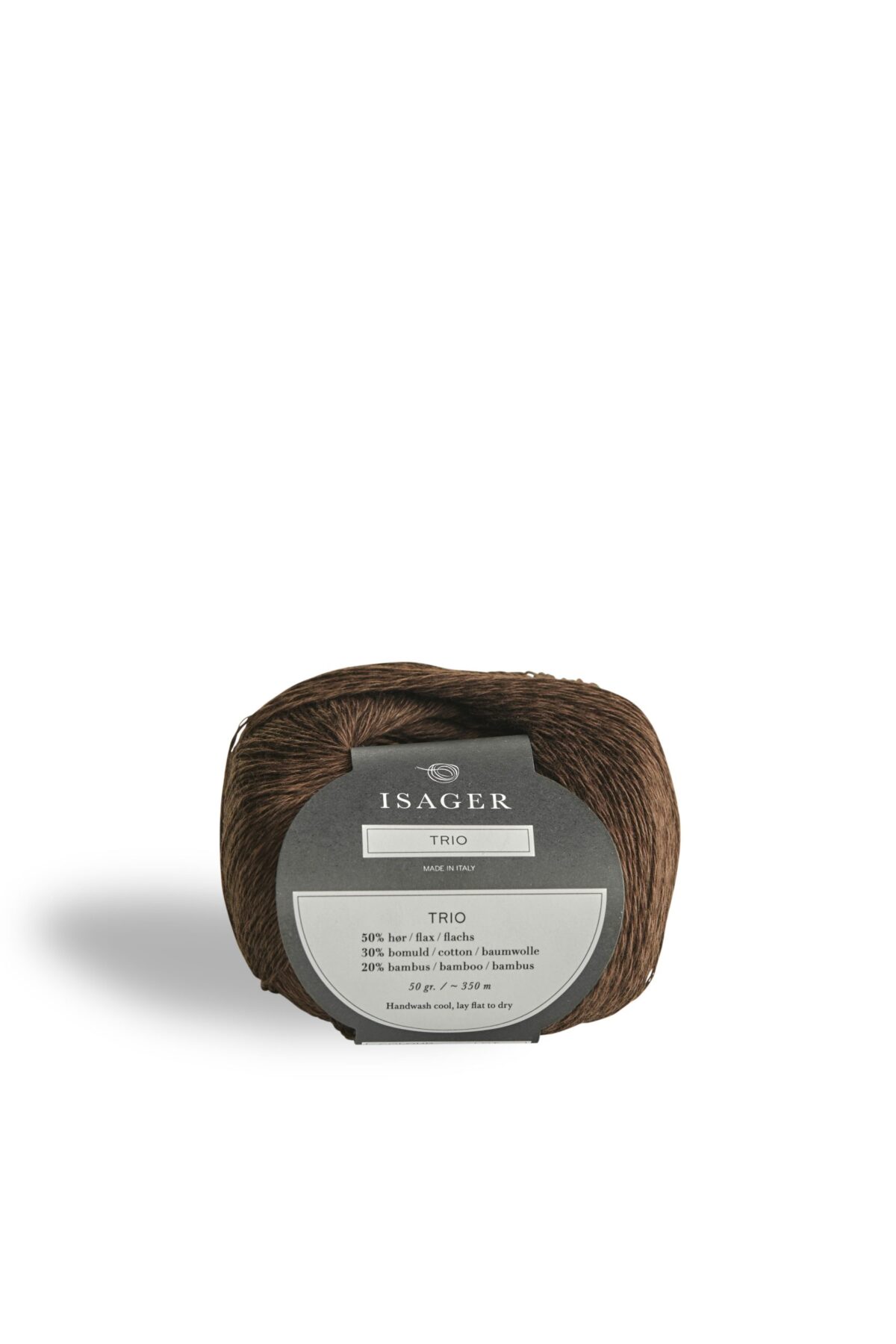 TRIO består af 50% Hør, 30% Bomuld og 20% Bambus. Garnet kan strikkes alene, med en, to, tre eller flere tråde, eller det kan strikkes sammen med de øvrige garnkvaliteter i Isagers sortiment.