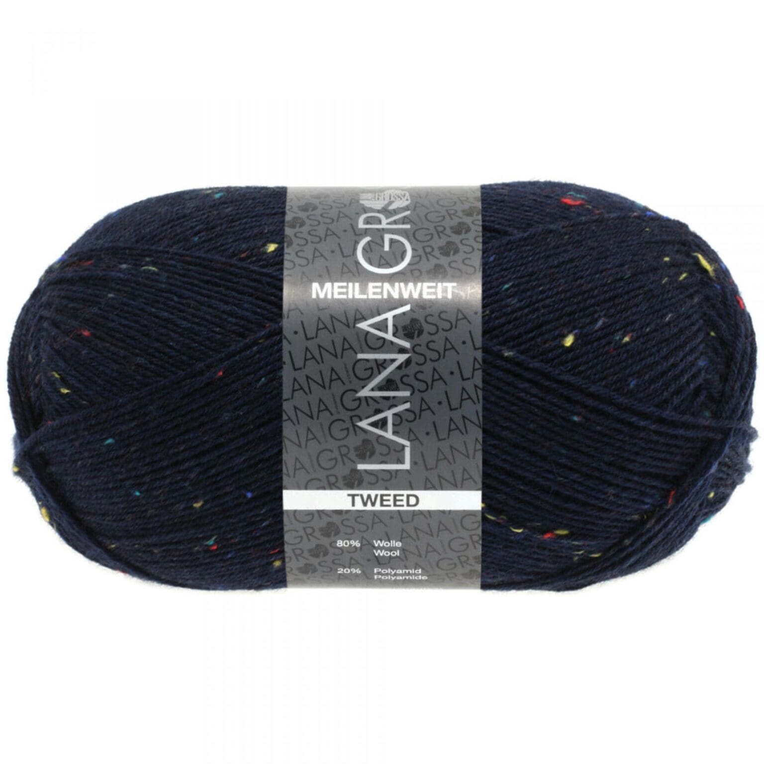 Med strømpegarnet Tweed 112 Midnatsblå fra Lana Grossa’s strømpeserie Meilenweit, kan du strikke de fineste og meget dejlige varme strømper. Designet er ensfarvet med tweednister, så du skal bare strikke løs og nyde resultatet.