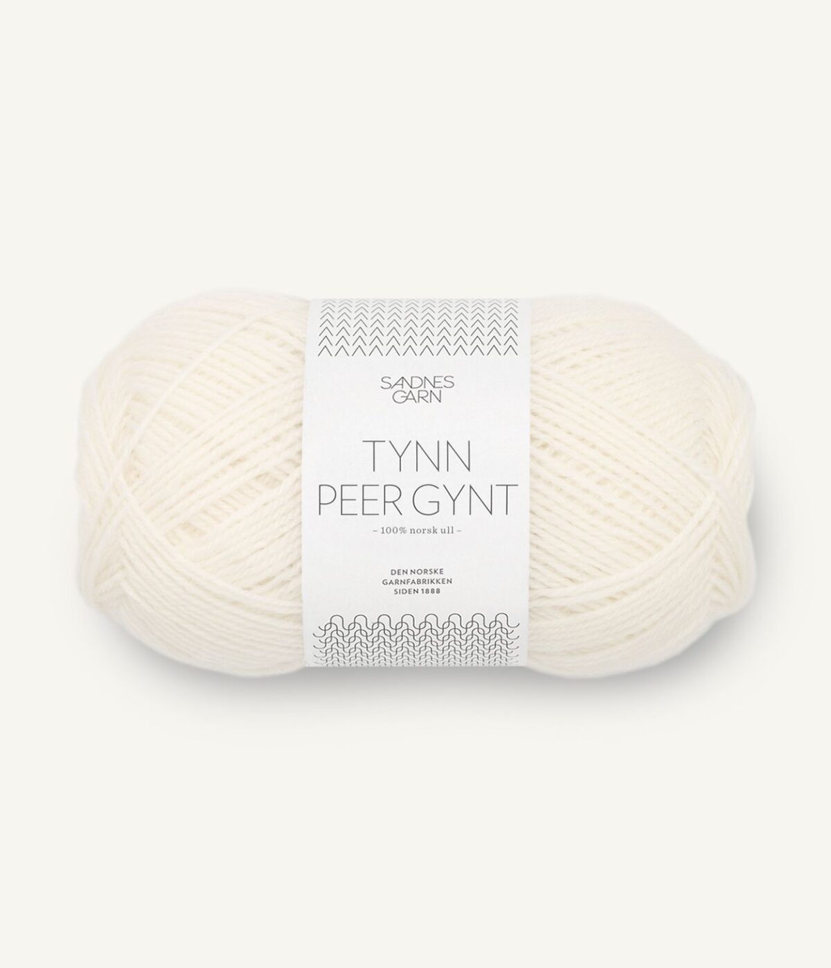 Garnet Tynn Peer Gynt 1002 Hvid er en videreudvikling af det gamle Peer Gynt, som har eksisteret siden 1938. Tynn Peer Gynt er til forskel fra Peer Gynt et noget tyndere 3-trådsgarn, som passer fint til pinde nr. 3.