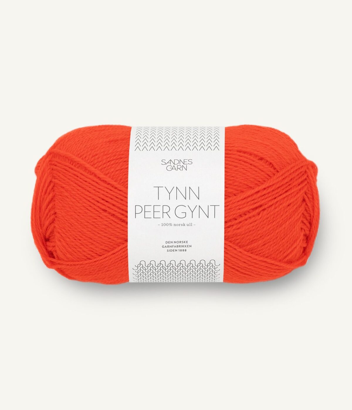 Garnet Tynn Peer Gynt 3819 Spicy Orange er en videreudvikling af det gamle Peer Gynt, som har eksisteret siden 1938. Tynn Peer Gynt er til forskel fra Peer Gynt et noget tyndere 3-trådsgarn, som passer fint til pinde nr. 3.