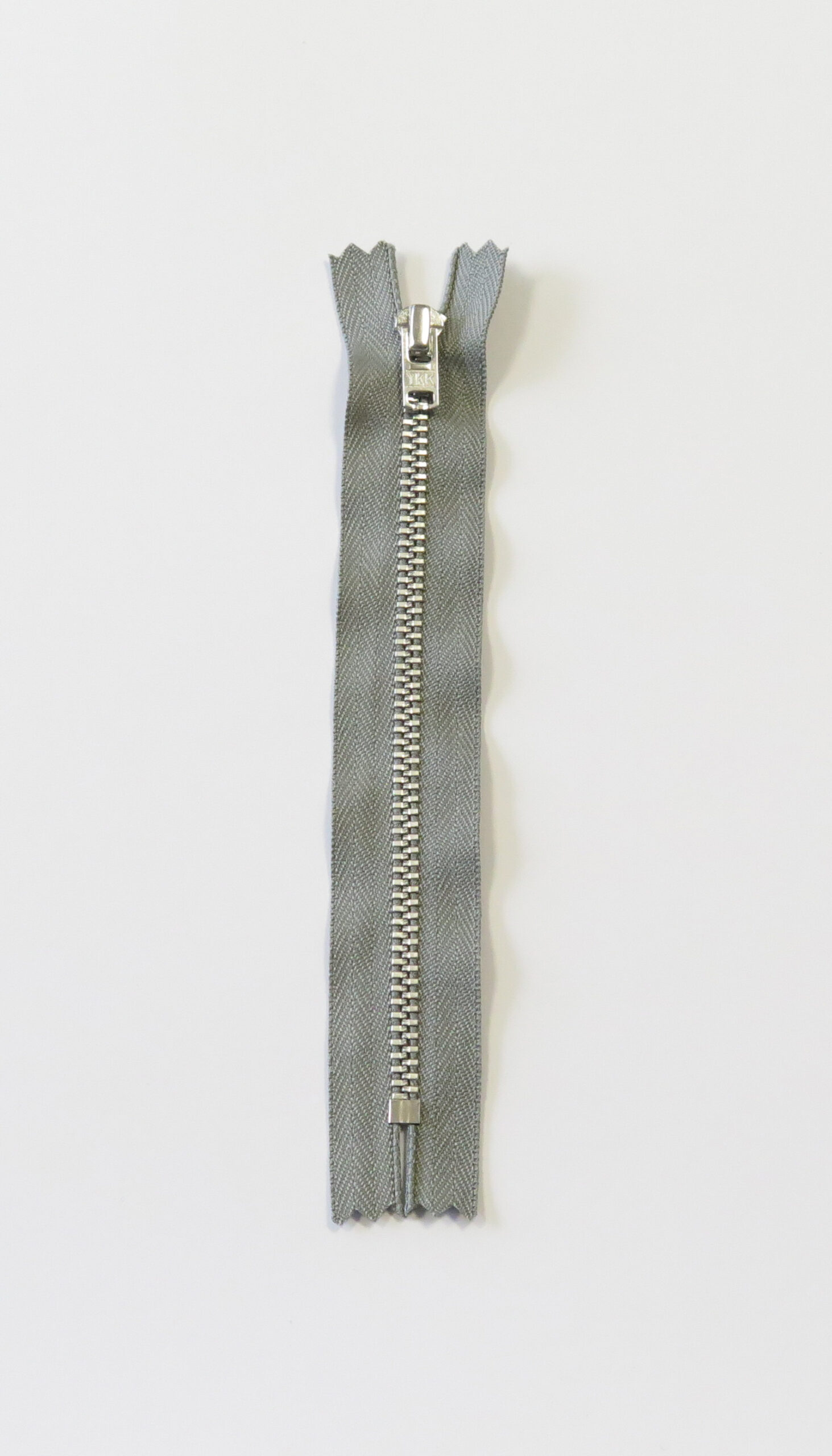 YKK Lynlås i aluminium – ikke delbar – 12 cm lang – med tænder og skyder i aluminium. Tændernes bredde er 4 mm.