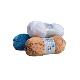 Når du vælger “Merci”, får du lækkert garn, der består af hhv. 50 % uld og 50 % bomuld. Mens bomulden giver garnet den bløde fornemmelse og det smukke fald, giver uld varme og komfort. “Merci” tåler også maskinvask, og det er et godt valg, hvis du vil fremstille sweatere.