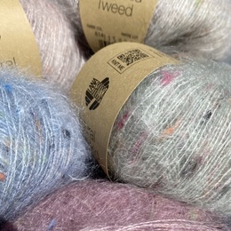 Garnet Natural Superkid Tweed fra Lana Grossa, er et lækkert luksusgarn, der ofte bruges til strikning og hækling.